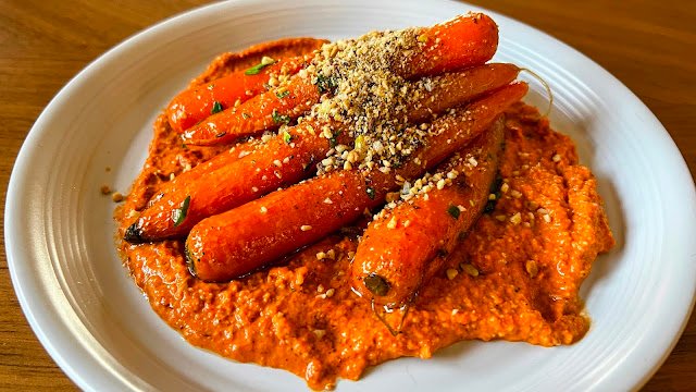 Honey Roasted Baby Carrots with Muhammara & Dukkah